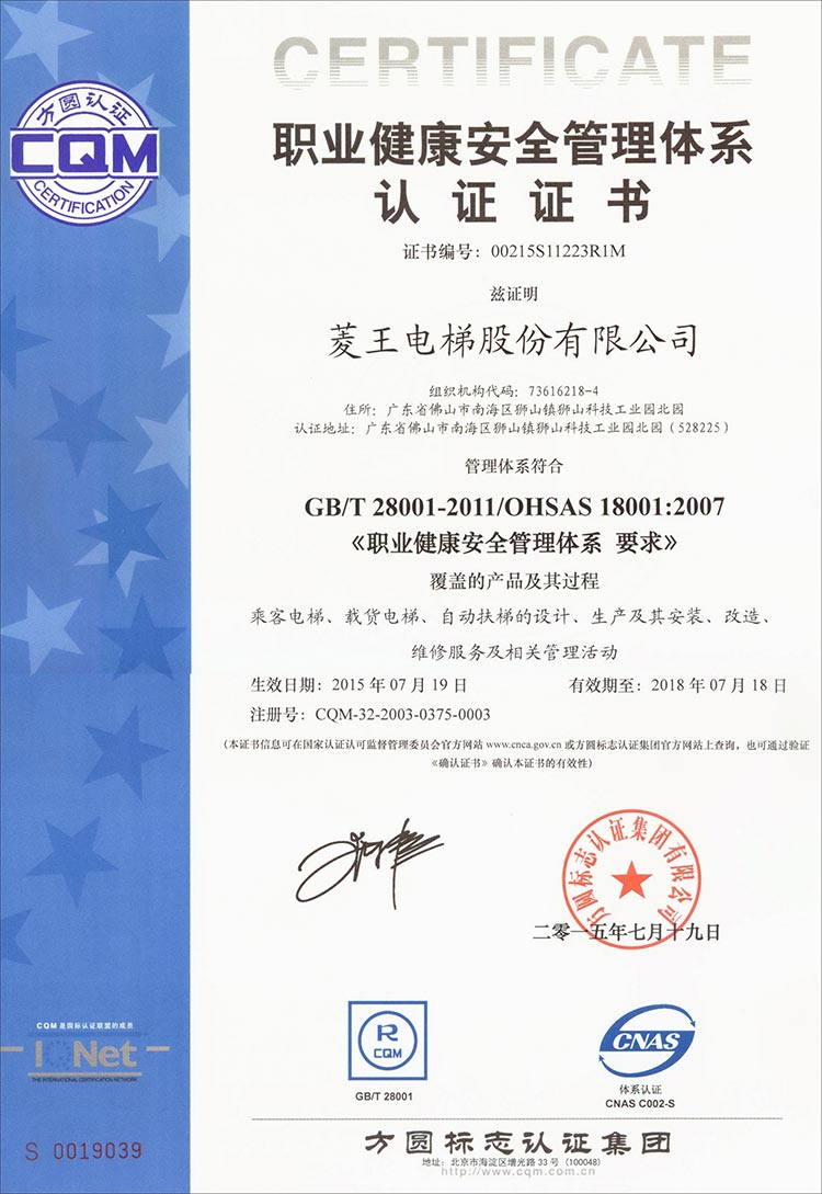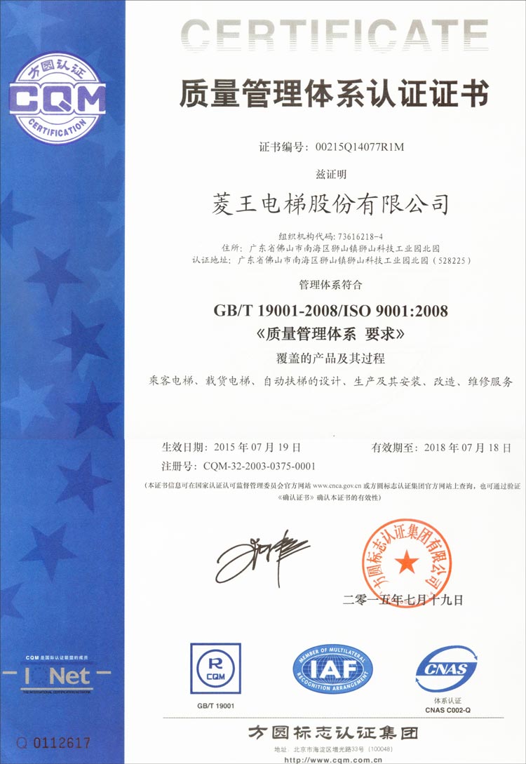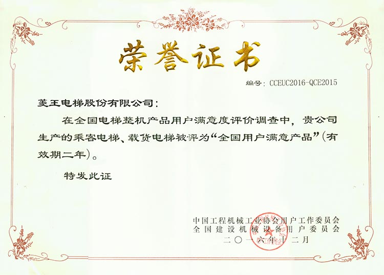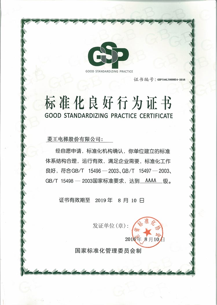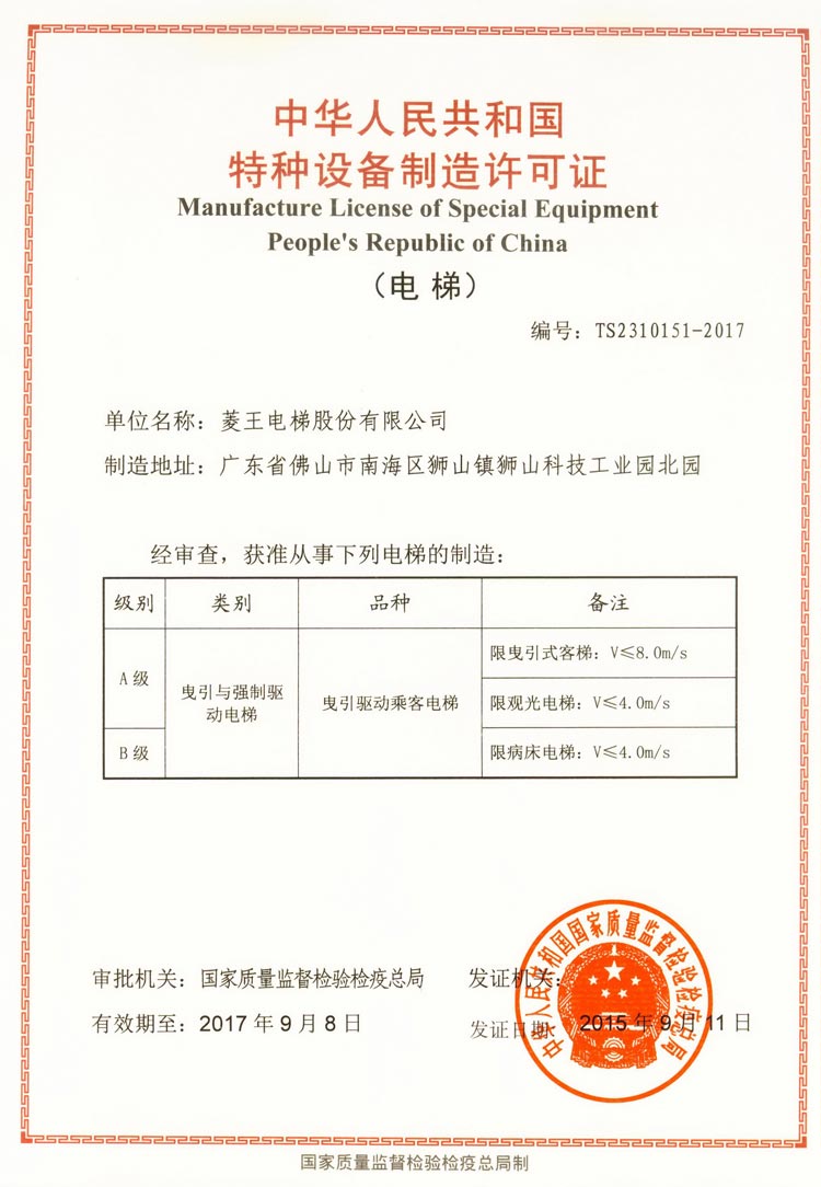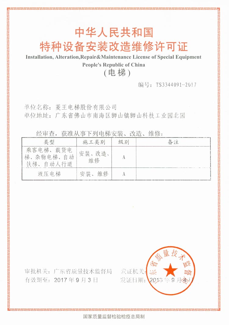 Gained A-Class certification of manufacture, installation, repair,and maintenance from Quality. Supervision Inspection