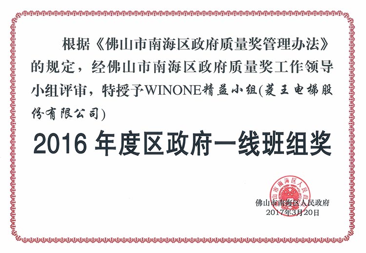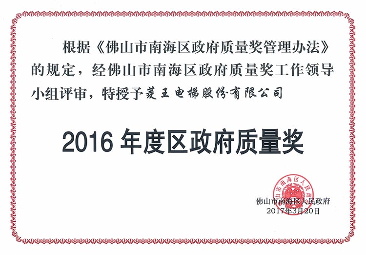 The Big Dipper Enterprise, Nanhai District Government Quality Award