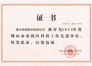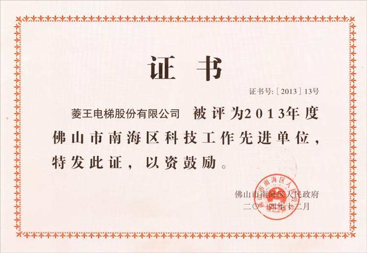 2013 Advanced Unit of Science and Technology of Nanhai District, Foshan City