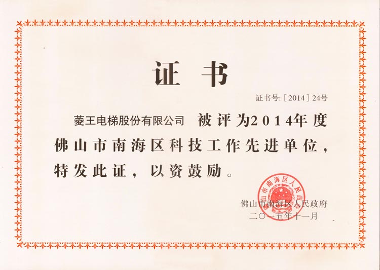 2014 Advanced Unit of Science and Technology of Nanhai District, Foshan City