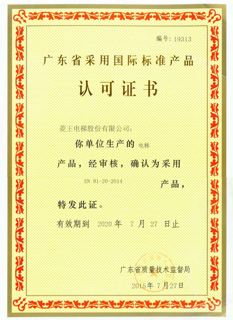 Guangdong Province adopts international standard product recognition certificate