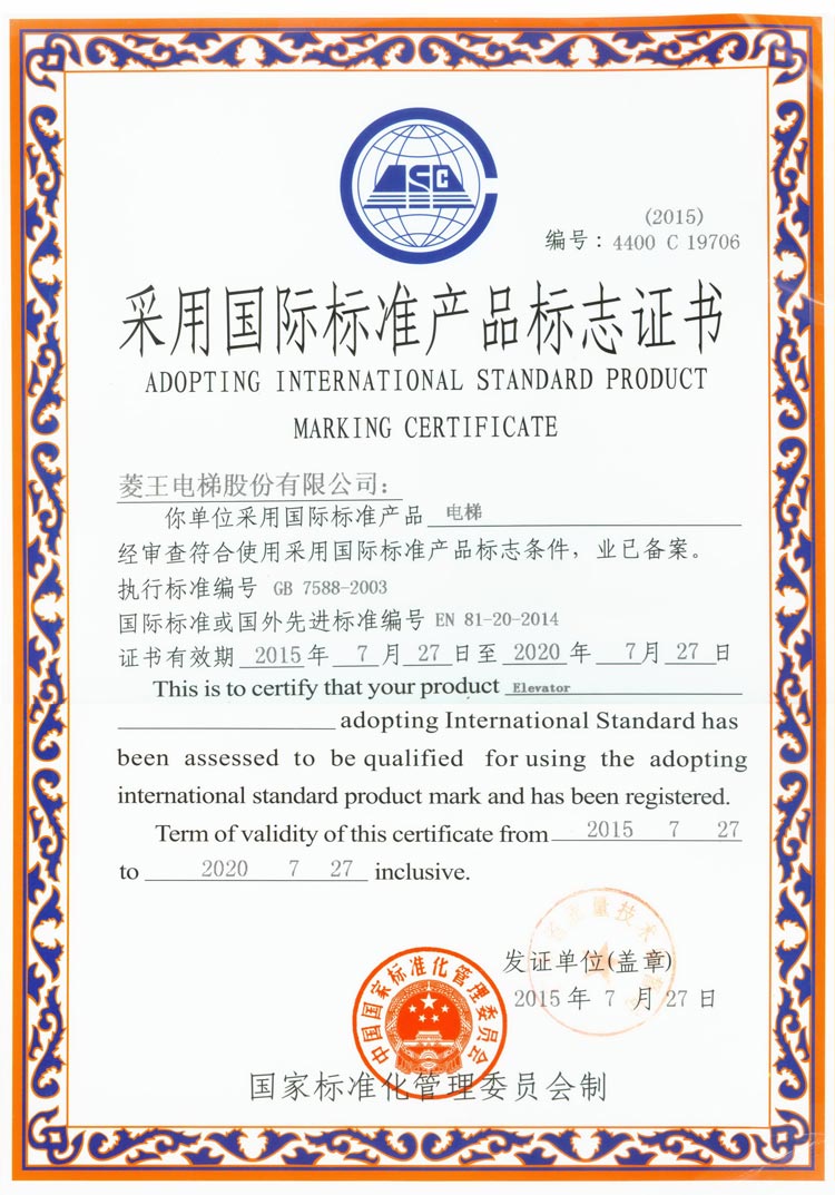 Adopt International Standard Product Mark Certificate
