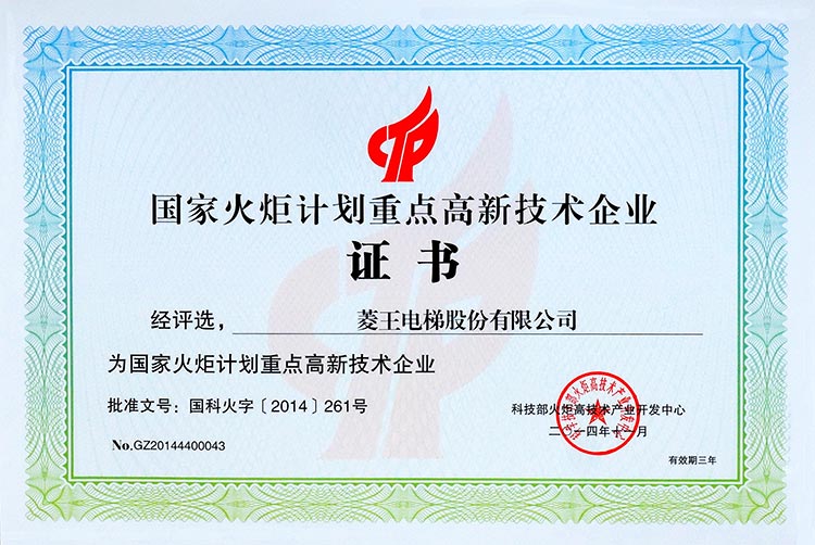 Key High-tech Enterprise of National Torch Plan
