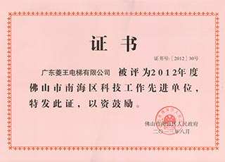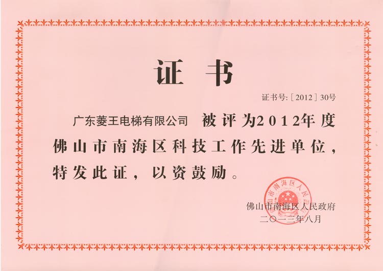 2012 Advanced Unit of Science and Technology of Nanhai District, Foshan City