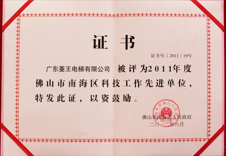 2011 Advanced Unit of Science and Technology of Nanhai District, Foshan City