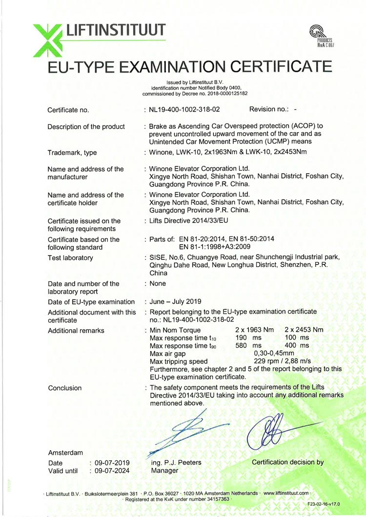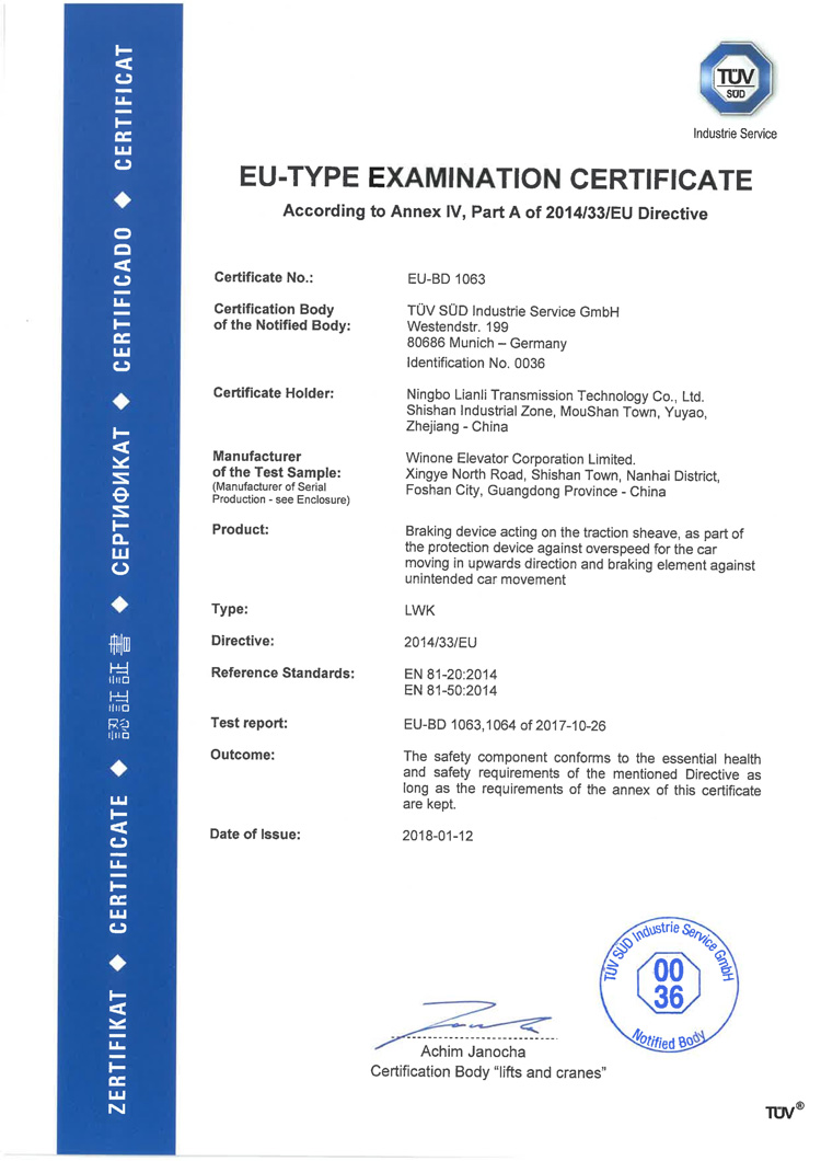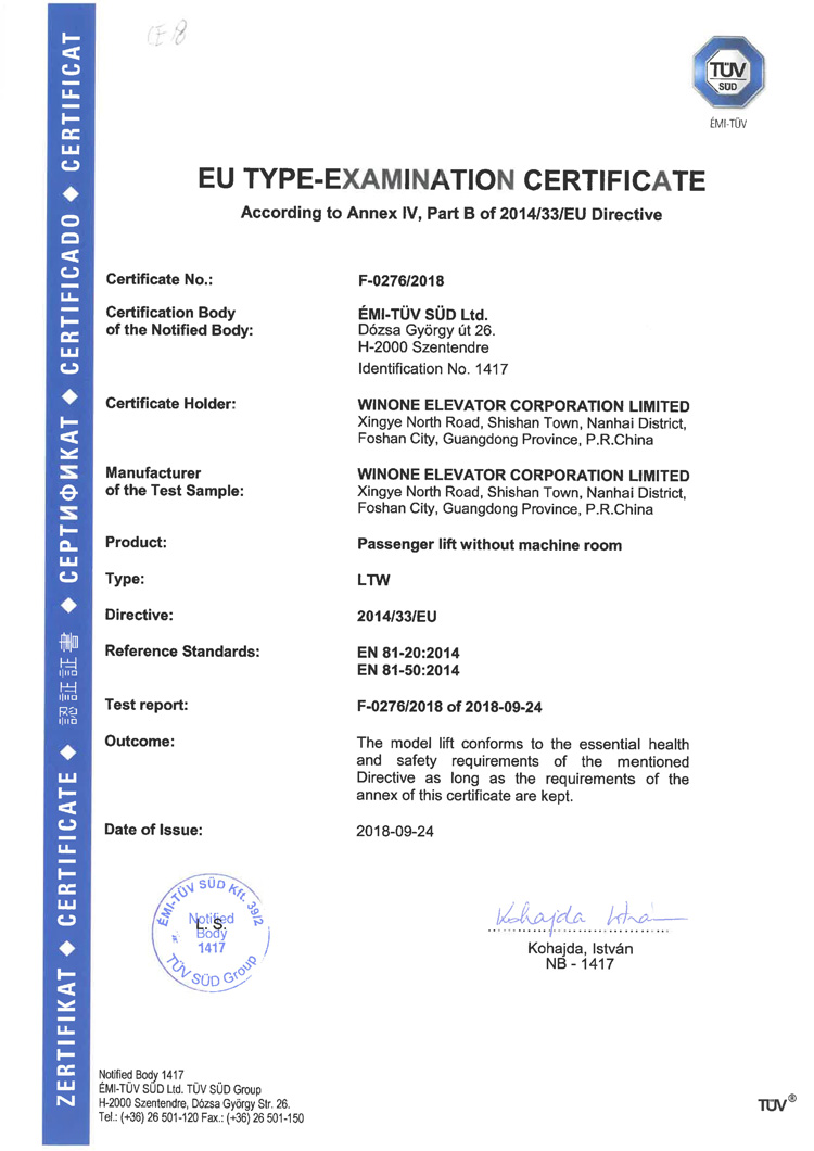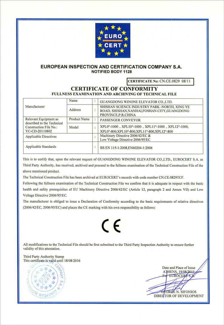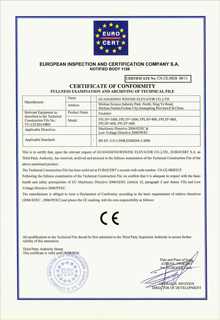 CE Certification (escalator)