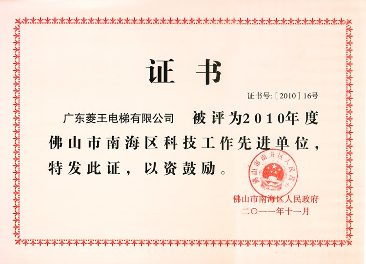 2010 Advanced Unit of Science and Technology of Nanhai District, Foshan City